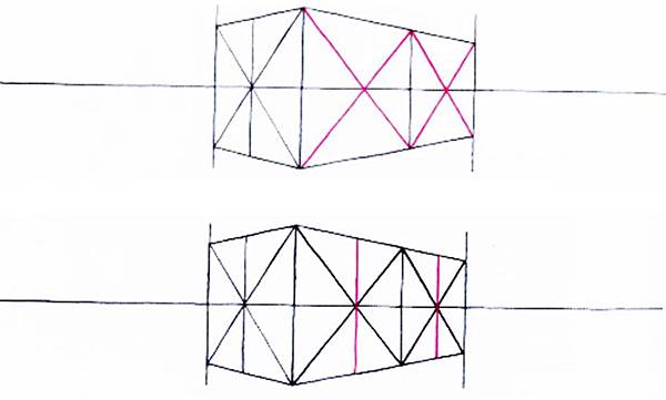 請先以原子筆將這三個造型繪製於紙上,再以鉛筆將第四邊的線繪製上去。